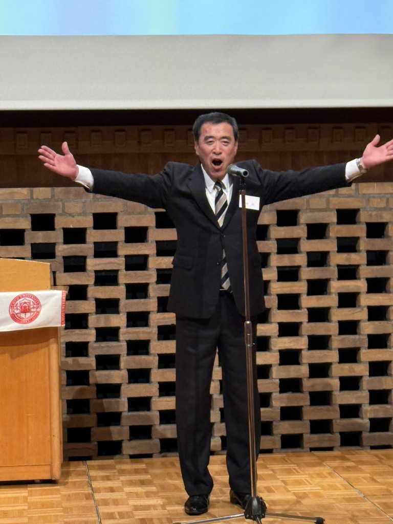第三部懇親会につきましては、スポーツで活躍している学員の報告や、首長等として重責を担っている学員の皆様方のお話を伺い、親交を深めることができました。